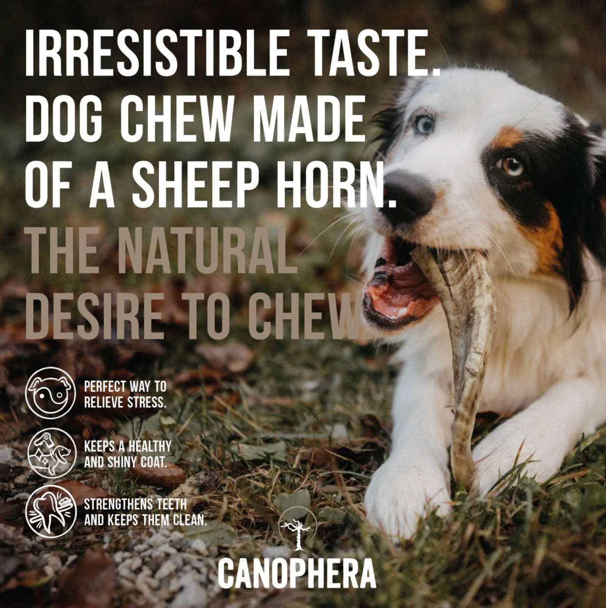 To satisfy your dog’s needs, the CANOPHERA Sheep Horn chews for dogs offer constant activity and playfully support dental care. They strengthen the dental muscles and promote the natural cleaning of teeth. The fibers of the sheep horn serve as a natural toothbrush.