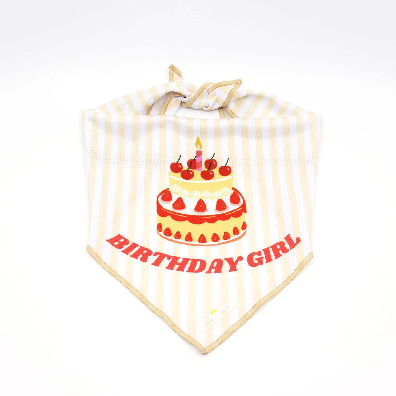 Make your furry friend's special day even more festive with our Birthday Girl Bandana! Made with high-quality materials and an easy-to-wear design, this bandana is sure to keep your furry friend comfortable and stylish throughout the party. And with three different sizes available, you can find the perfect fit for any dog breed or size. But don't let its fun design fool you - this bandana is also functional! Its advanced cooling technology will keep your pup cool and comfortable, even during the hottest summer days. And when the party's over, simply toss it in the washing machine for easy cleaning.  Lightweight mesh fabric: Evaporative cooling technology > Comes in 3 sizes: Small, Medium, Large > No chemical coolants