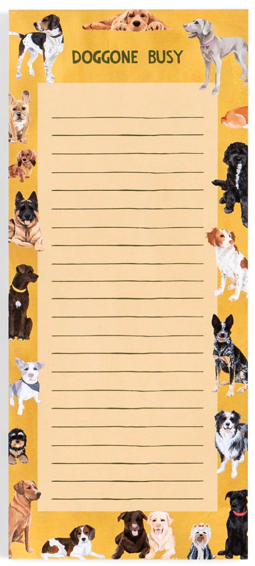 Stay organized and on top of your tasks with our Doggone Busy Dogs To-Do Notepad! This lined notepad features sweet hand-painted dogs, adding a playful touch to your daily planning. With plenty of space for jotting down tasks, notes, and reminders, this notepad helps you tackle your to-do list with ease. Whether you're planning your day, keeping track of appointments, or simply jotting down ideas, this notepad is a handy companion for any busy dog lover. Ideal for pup enthusiasts, busy professionals, or anyone in need of a cute and functional notepad, our Doggone Busy Dogs To-Do Notepad is sure to become a favorite addition to your desk or workspace. Treat yourself or surprise a fellow dog lover with this delightful notepad that combines style with practicality!