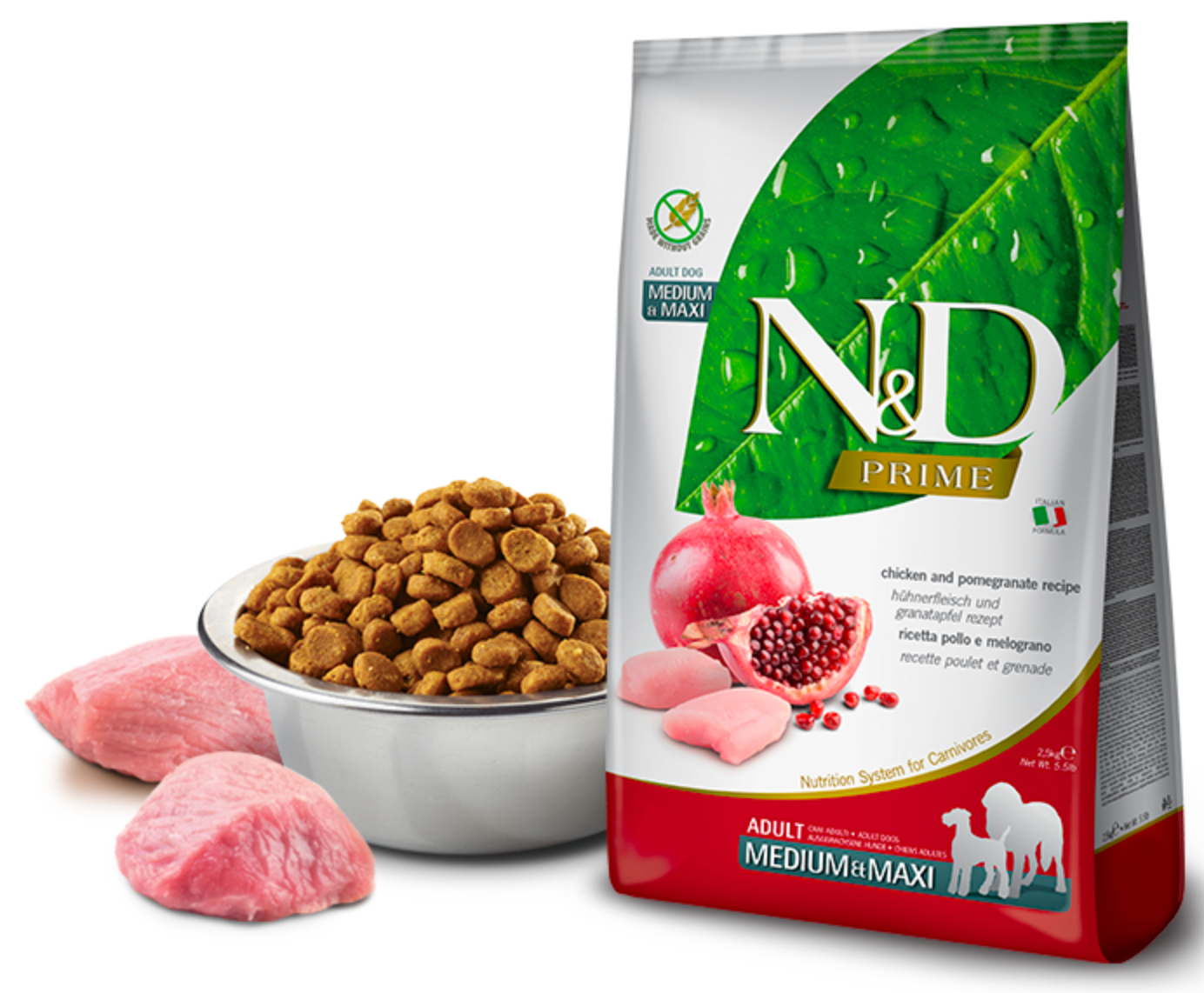 N&D Chicken and pomegranate recipe is formulated to meet the nutritional levels established by the AAFCO Dog Food Nutrient Profiles for maintenance.