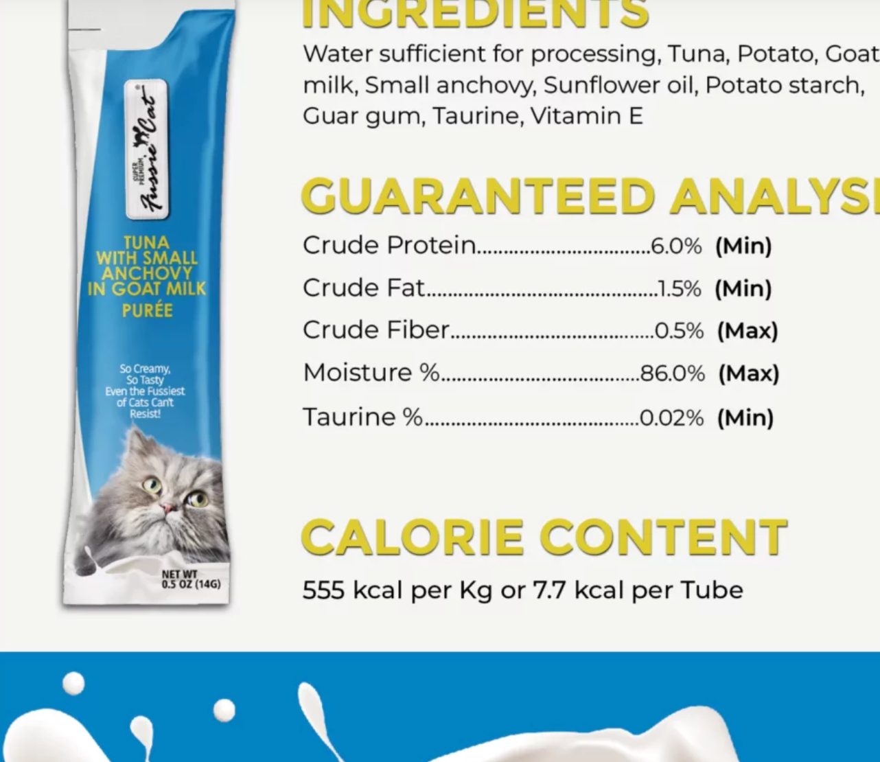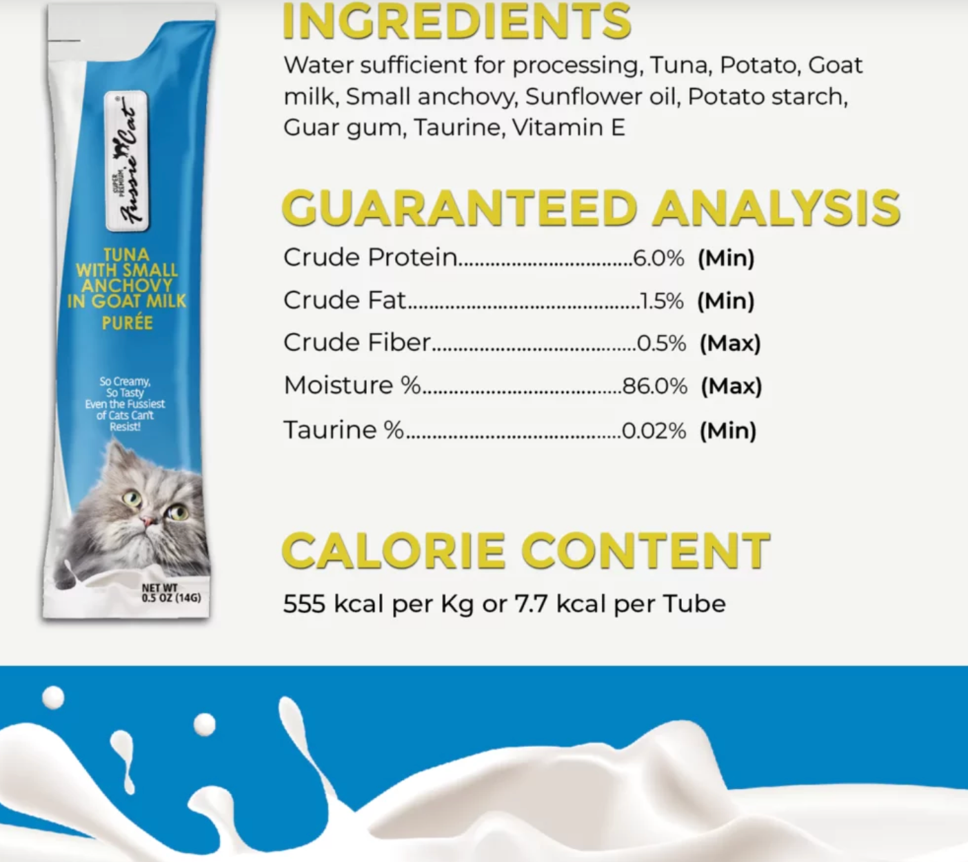Fussie Cat Treat Puree Tuna w/ Small Anchovies Goat Milk