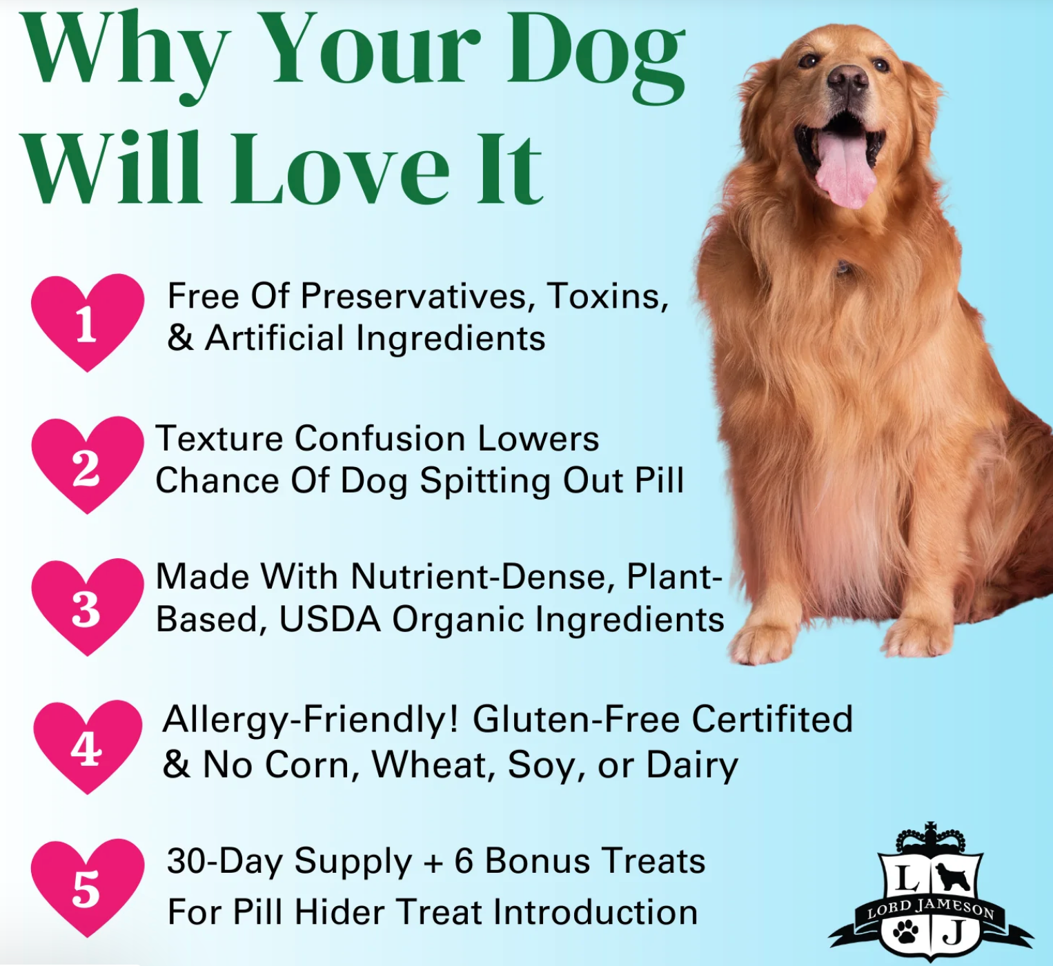 Texture confusion decreases the chance of your dog spitting out the pill. We leave real bits peanuts, oats, and blueberries in our dough to confuse the dog's palate leaving them unable to differentiate between pill or treat.