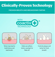 Fresher Breath flavorless water additive, powered by coactiv+® technology and clinically-proven to reduce tartar and freshen breath. The only VOHC-Accepted water additive for tartar control with no brushing required.
