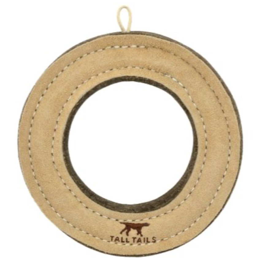 Tall Tails Dog Toy Natural Leather & Wool Ring 7"