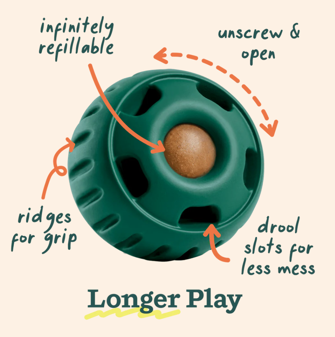 Long-lasting quiet in a beautifully designed dog toy. Easy to clean and fill with DIY or pre-made treats.