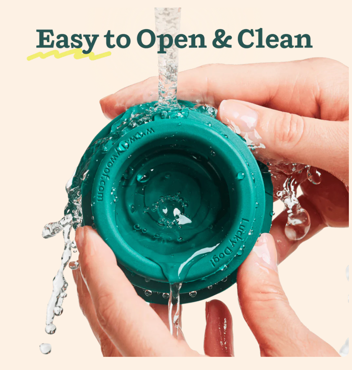 The Pupsicle opens in the middle for easy filling, cleaning, and reuse. To get started, unscrew the bottom, drop in a treat, and give it to your dog.