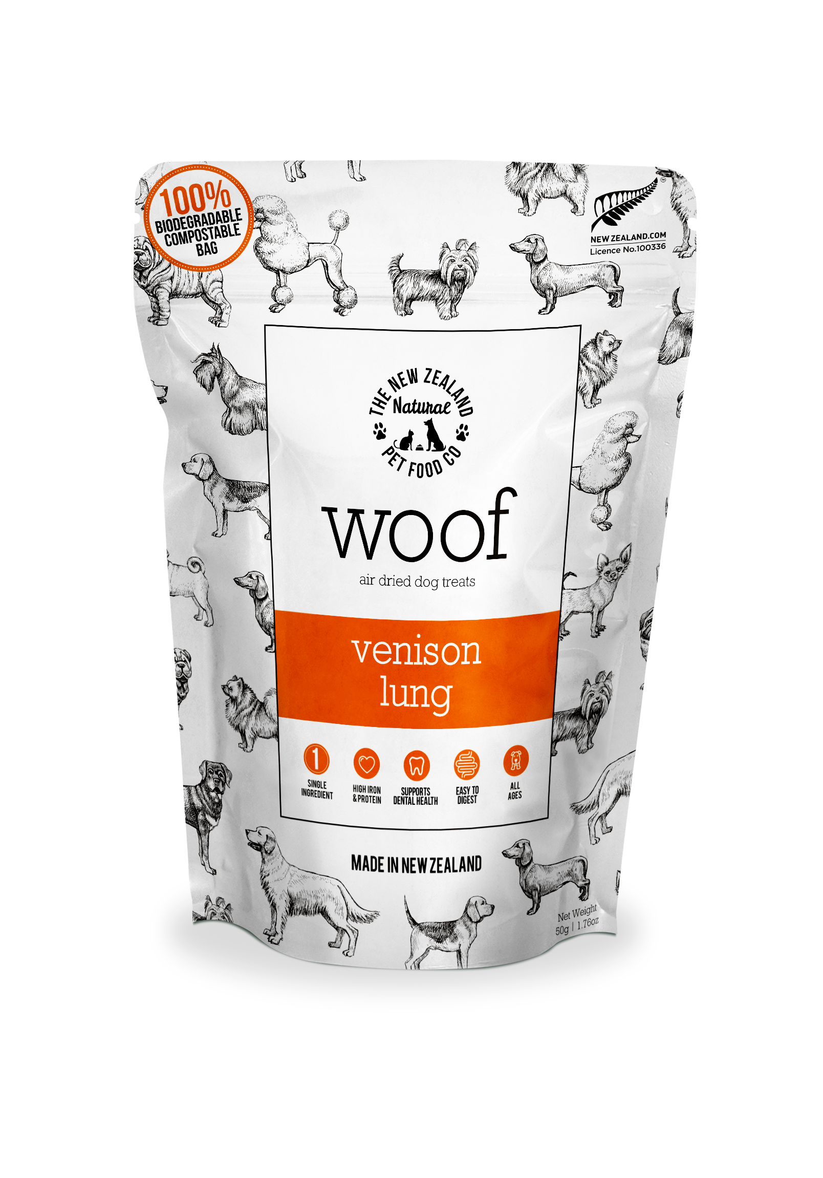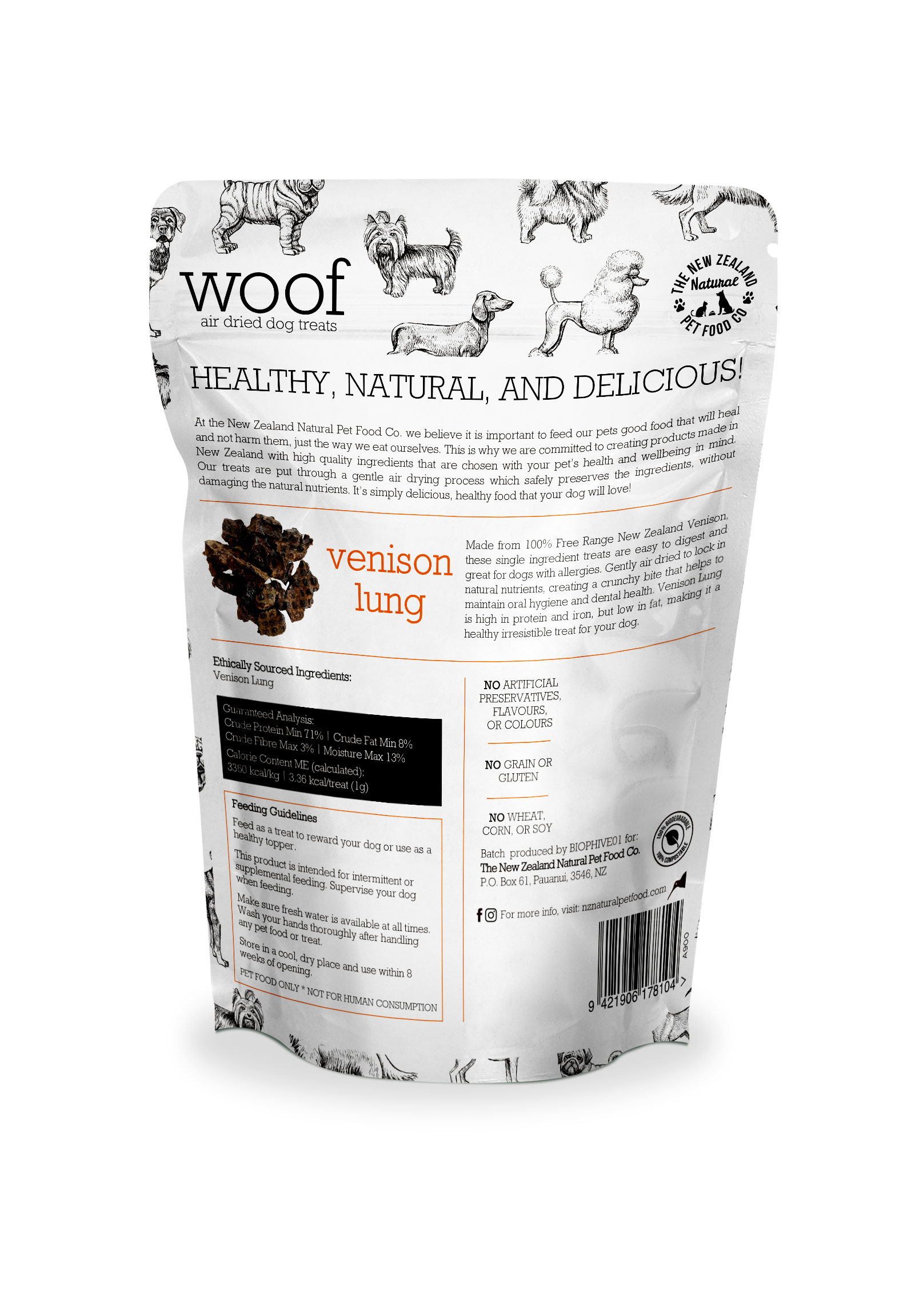 WOOF Venison Lung Treats are a healthy, protein-rich snack for your dog.